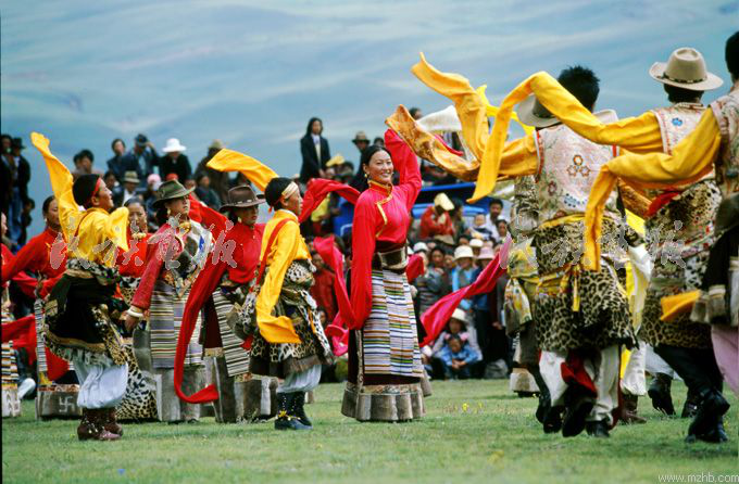 到17世紀(jì)中葉,“雪頓”活動(dòng)內(nèi)容更加豐富,已開(kāi)始演出藏戲,并以哲蚌寺為活動(dòng)中心開(kāi)展活動(dòng),故又稱之為“哲蚌雪頓”,從此便形成了固定的雪頓節(jié)。五世達(dá)賴羅桑嘉措從哲蚌寺移居布達(dá)拉宮后,每年藏歷六月三十日,首先在哲蚌寺舉行藏戲匯演,次日則必須赴布達(dá)拉宮演出。18世紀(jì)下半葉羅布林卡(寶貝圓林)建成,達(dá)賴?yán)镆凭恿_布林卡,雪頓節(jié)的活動(dòng)又從布達(dá)拉宮轉(zhuǎn)移到羅布林卡。每年藏歷七月一日,由拉薩、日喀則、窮吉、雅礱、堆龍德慶、尼木等地的藏劇團(tuán),6個(gè)“扎西雪巴”(藏戲的一種)戲班子,一個(gè)牦牛舞班子和一個(gè)“卓巴”(打鼓舞隊(duì)),在羅布林卡進(jìn)行聯(lián)合演出。屆時(shí),噶廈政府機(jī)關(guān)放假,全體官員要集中到羅布林卡陪同達(dá)賴?yán)镉^看藏戲,中午噶廈政府要專門(mén)設(shè)宴招待全體官員,席間不能缺少酸奶,以示對(duì)節(jié)日由來(lái)的紀(jì)念。在此期間,允許拉薩市民及附近藏族群眾進(jìn)入羅布林卡觀看藏戲演出,這便逐漸形成了一整套固定的節(jié)日儀式。雪頓節(jié)經(jīng)過(guò)了300多年的發(fā)展歷史,從宗教節(jié)日演化為藏戲藝術(shù)節(jié)。故此,現(xiàn)代人把雪頓節(jié)稱之為“藏戲節(jié)”。